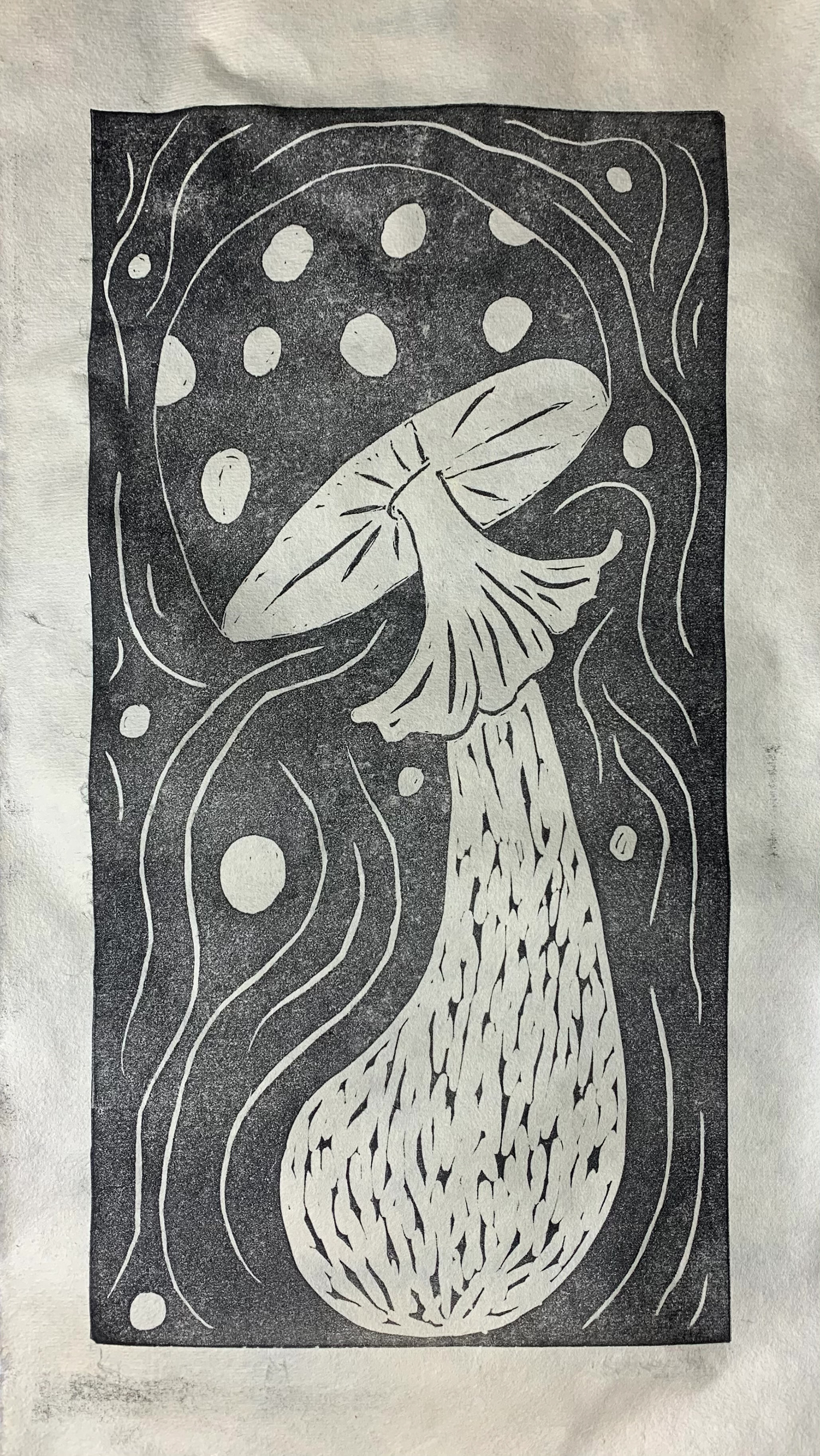 Lino-block print with black ink